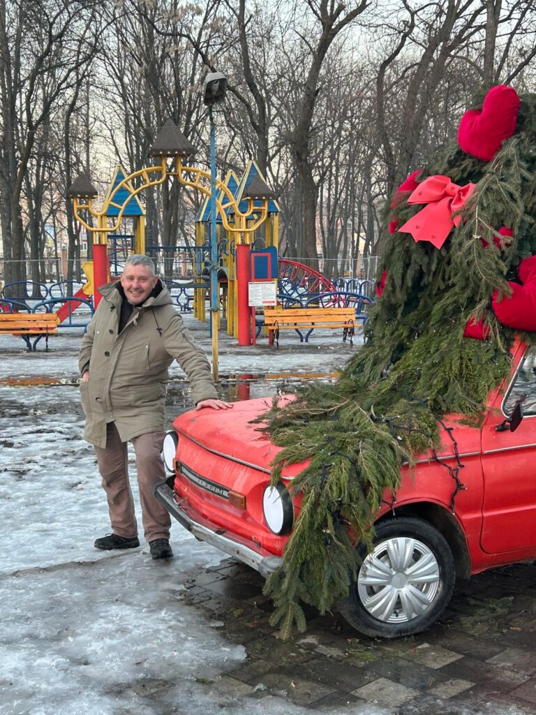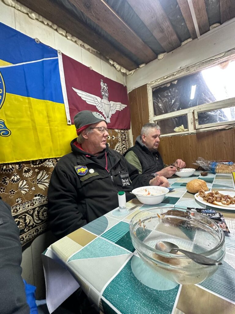 From here, we went to visit James Kaprini – Both Mike and Anna have been supporting Jimmy from a distance so this was an opportunity for Mike to finally meet him. We also had some aid for him too. Jimmy and Anna kindly offered to take us out into the front line area near to Orikhiv so that Mike could experience what it was like there.