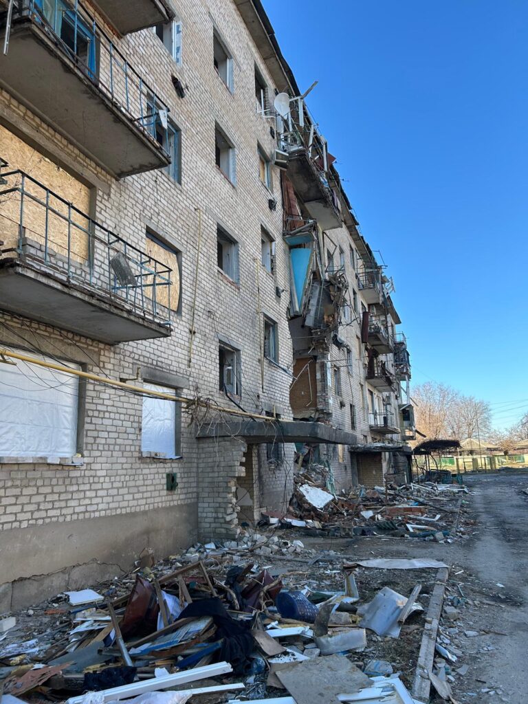 This was the first time on this run that we needed to wear body armour and our sincere thanks to Jimmy and Anna for making this happen – any visit outside the City can be dangerous and Jimmy does this pretty much daily, going a lot further towards zero line to deliver aid where it is most needed. He had cleared our trip, checked on known threats before we left and gave us both a thorough briefing on what to do. (and what NOT to do!). He carries a drone detector which enabled us safely to visit towns and villages that have been wantonly destroyed by the Russians – just ordinary people, getting on with their lives, lived in these places before they were destroyed. The following clips and photos were taken during this trip – once again, we can’t thank Jimmy enough for putting himself and Anna at risk so that Mike could see this first hand for the first time.