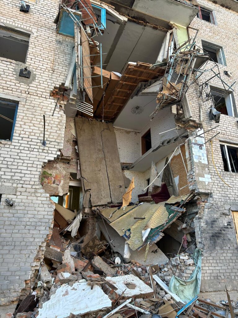 This was the first time on this run that we needed to wear body armour and our sincere thanks to Jimmy and Anna for making this happen – any visit outside the City can be dangerous and Jimmy does this pretty much daily, going a lot further towards zero line to deliver aid where it is most needed. He had cleared our trip, checked on known threats before we left and gave us both a thorough briefing on what to do. (and what NOT to do!). He carries a drone detector which enabled us safely to visit towns and villages that have been wantonly destroyed by the Russians – just ordinary people, getting on with their lives, lived in these places before they were destroyed. The following clips and photos were taken during this trip – once again, we can’t thank Jimmy enough for putting himself and Anna at risk so that Mike could see this first hand for the first time.