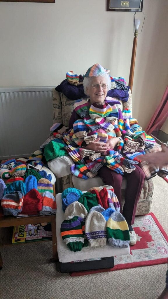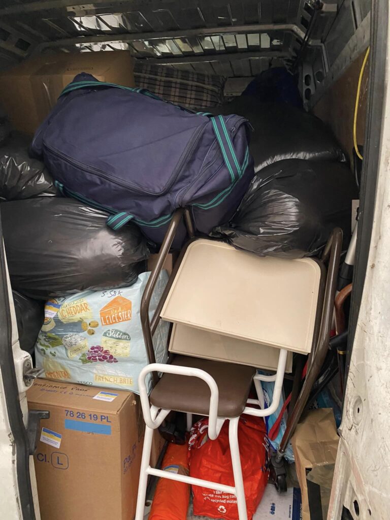 Just some of the items that were in the van – although Shirley’s mum, who knitted 101 hats for children, was not included! 🙂